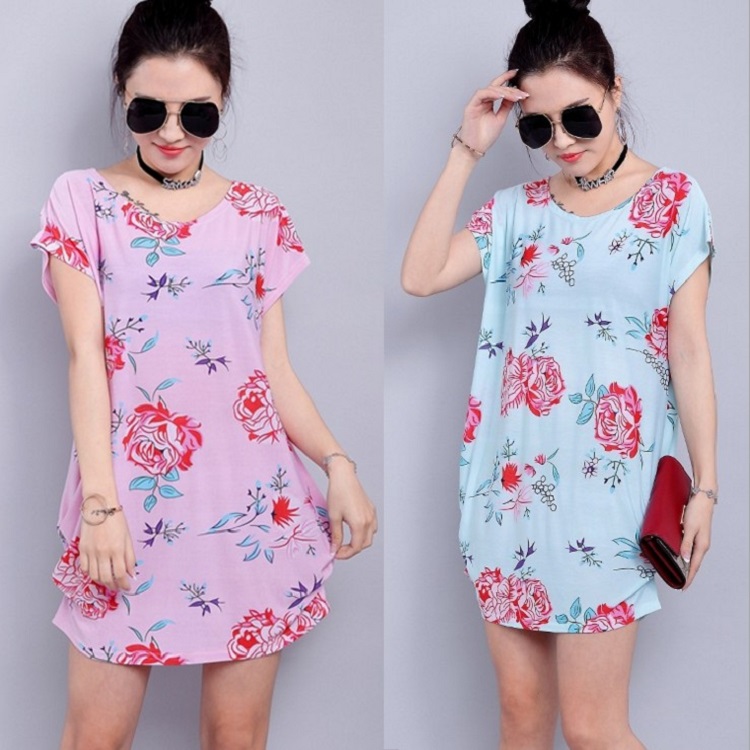 2018新款女装冰丝大码胖MM宽松中长款短袖连衣裙打底衫T恤