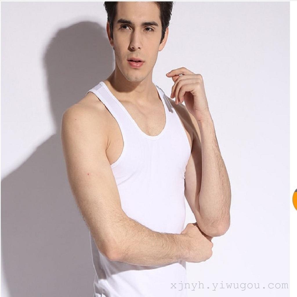 外贸夏季男士涤棉棉背心工字男跨栏运动无袖粗螺纹大商标背心