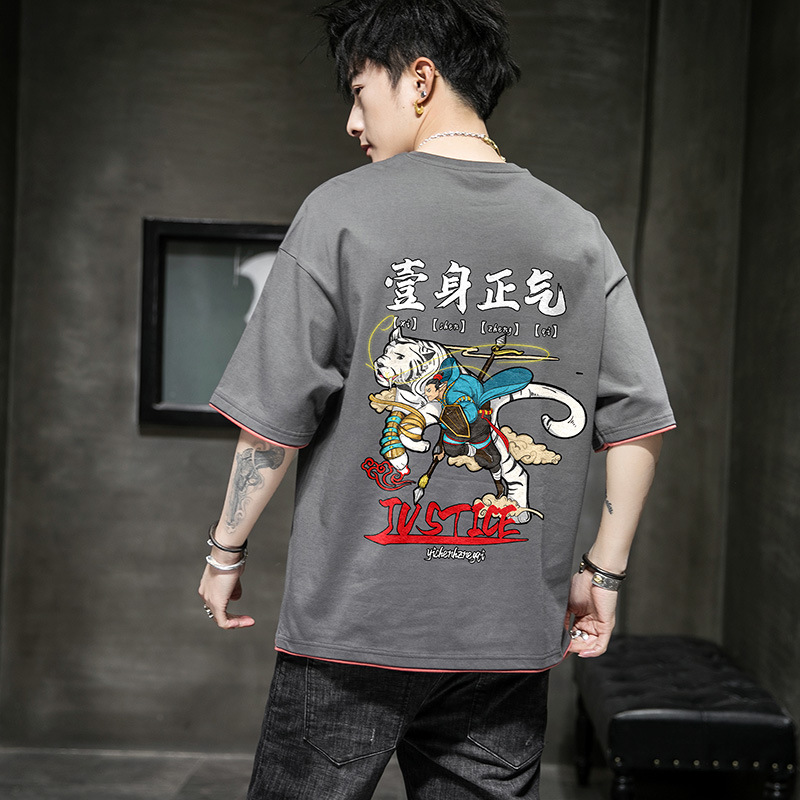 短袖t恤 男士国潮2021夏季新款宽松男装潮牌棉体恤半袖中国风衣服