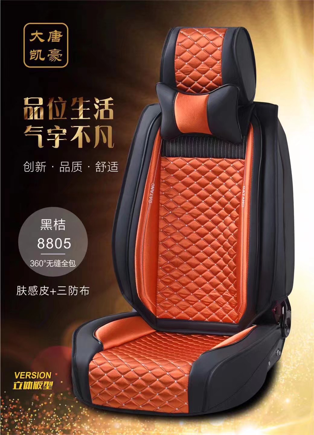 2018春夏季新款菱形绗绣分体座垫,肤感皮+三防布面料