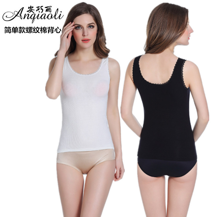 蕾丝边螺纹棉宽肩背心女2018春夏美背修身外穿无袖打底衫