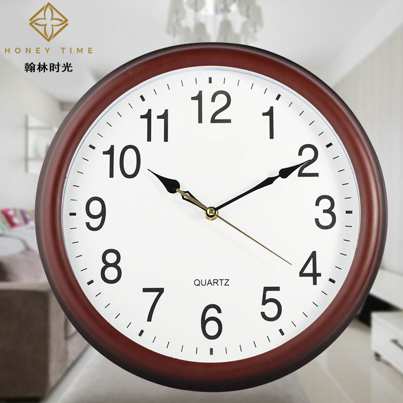 创新款家居圆形挂钟 复古14寸扫描机芯时钟 钟表批发