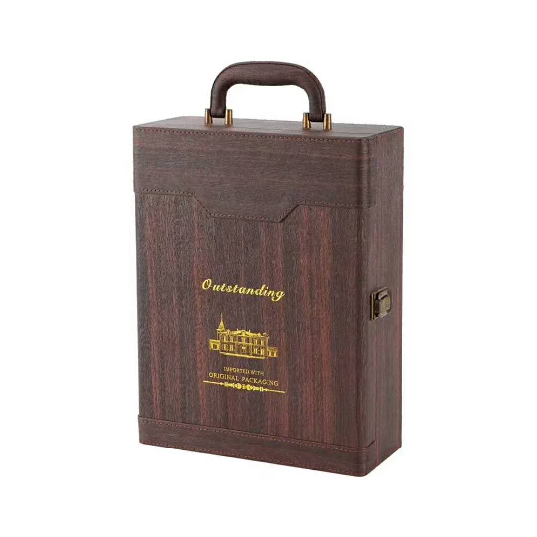2018新款红酒盒 双支装红酒礼盒 优质树皮纹PU皮 高档红酒皮盒