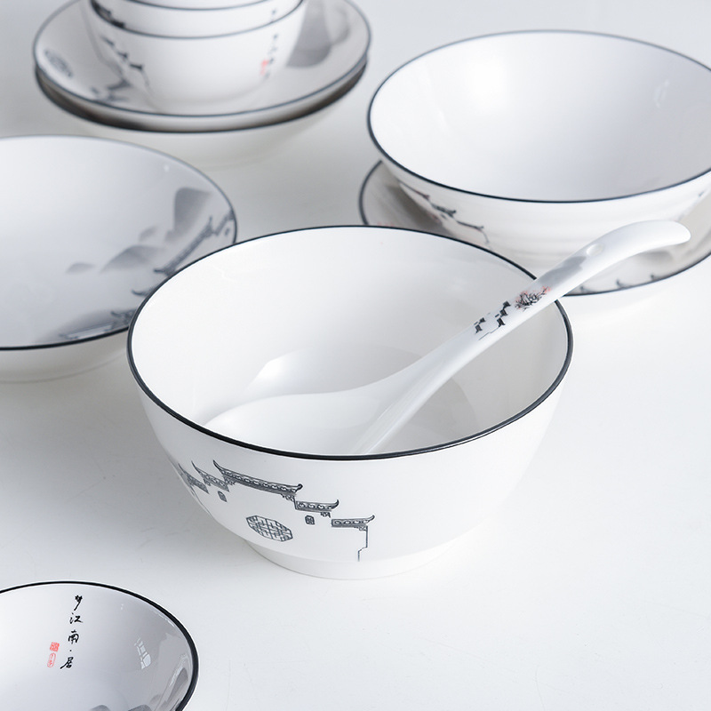 中国风创意陶瓷盘子网红轻奢餐具餐盘菜盘家用早餐盘水墨风批发