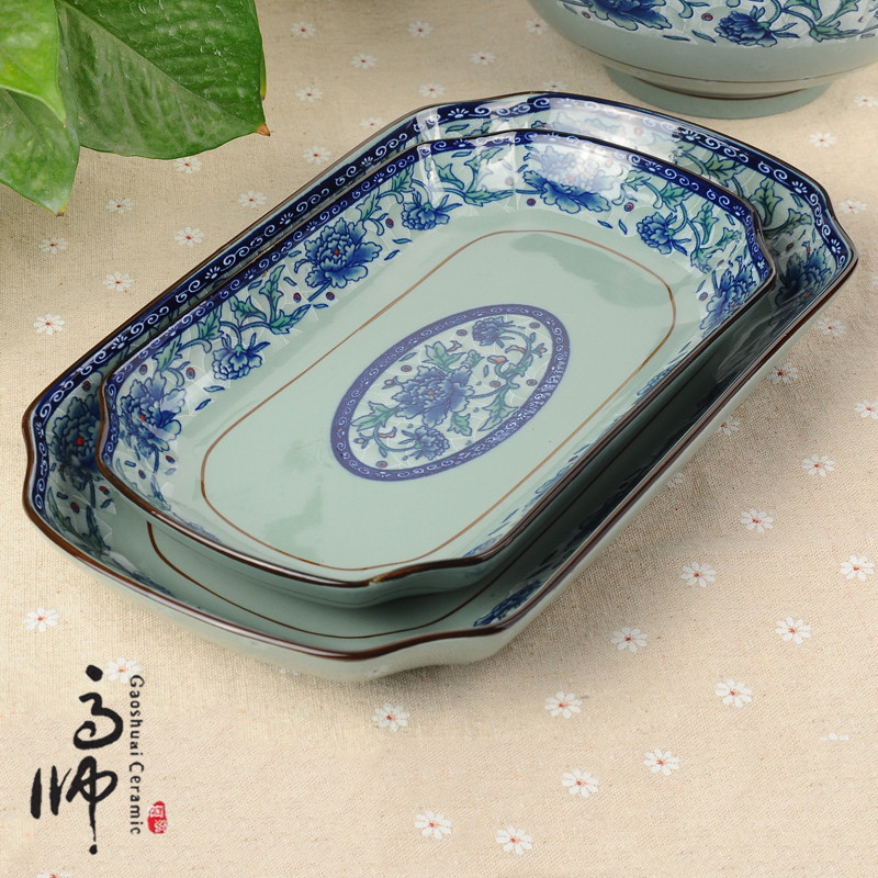定制10.5寸/12寸鱼盘 2018新款外贸青花瓷菜盘 陶瓷餐具批发盘子