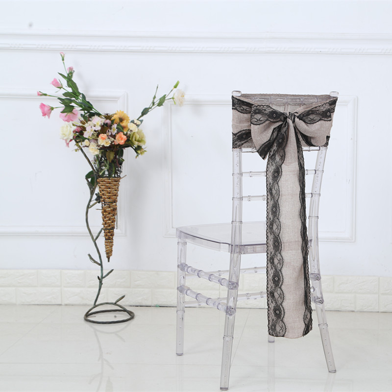 2018新款欧式蕾丝仿麻椅背纱一件代发 婚庆椅背花蝴蝶结绑带定制