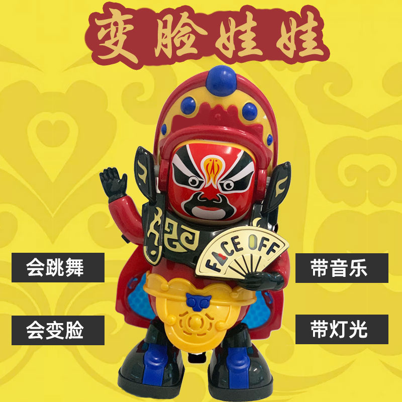 夜市地摊川剧自动变脸电动公仔灯光音乐机器人跳舞企鹅中国风玩具