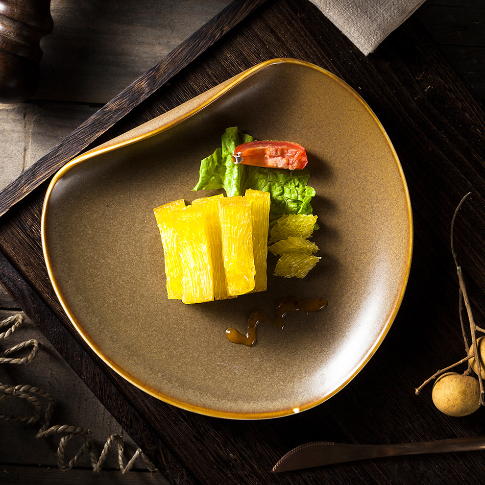 创新造型窑变单弧边盘子 餐厅酒楼糕点小菜特色盘摩登装饰盘