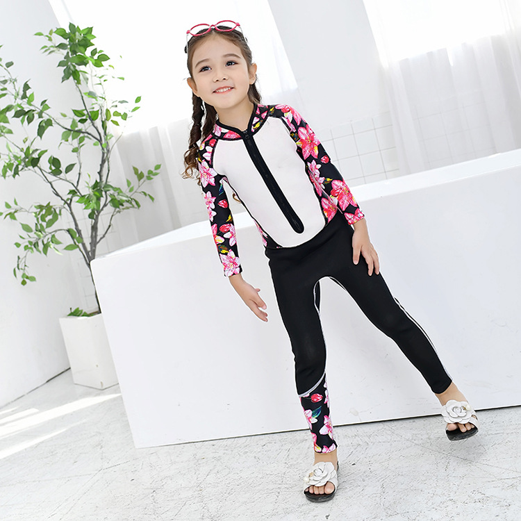 魅依尔品牌2018新款儿童泳衣碎花连体潜水服高品质温泉儿童游泳衣