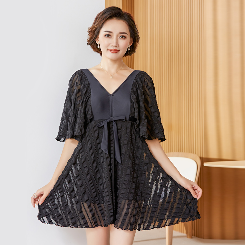 海波特妈妈泳衣中老年女保守遮肚显瘦连衣裙式宽松胖MM温泉游泳衣