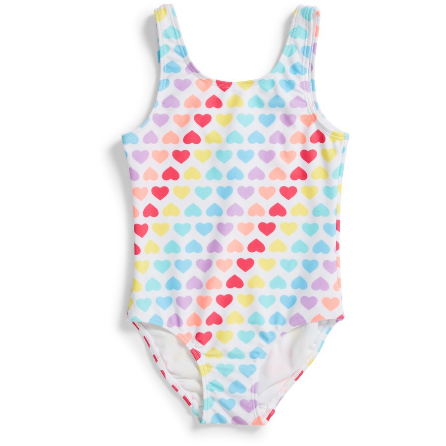 儿童新款彩色爱心印花出口女童连体泳衣