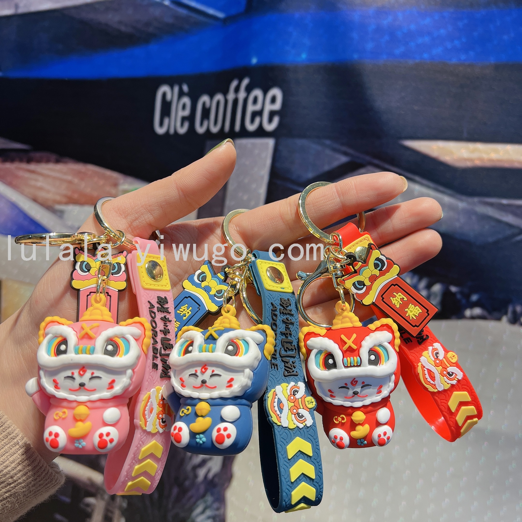 新钥匙扣新年舞狮猫优惠情侣汽车钥匙包包挂件时尚挂饰礼品
