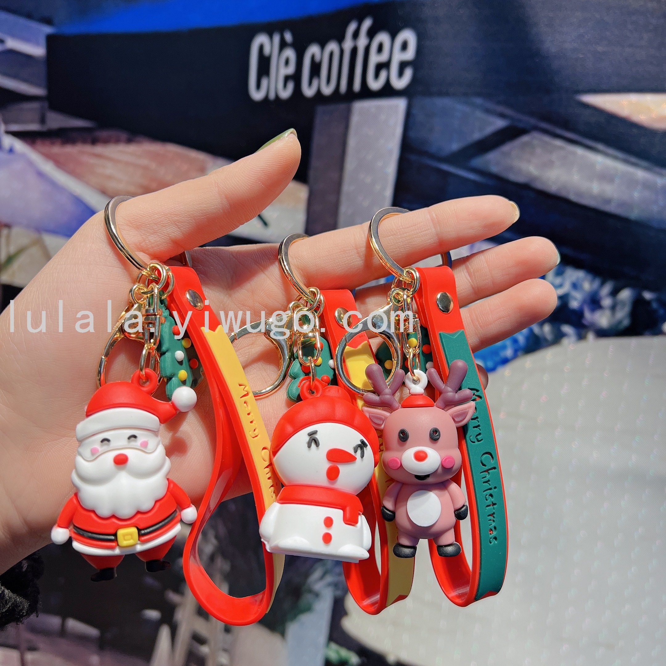 韩版创意圣诞节老人系列汽车包包PVC软胶钥匙链礼品挂饰挂件批发