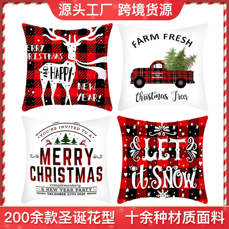 新款沙发圣诞节抱枕定制亚马逊家居短毛绒亚麻印花圣诞汽车靠枕套
