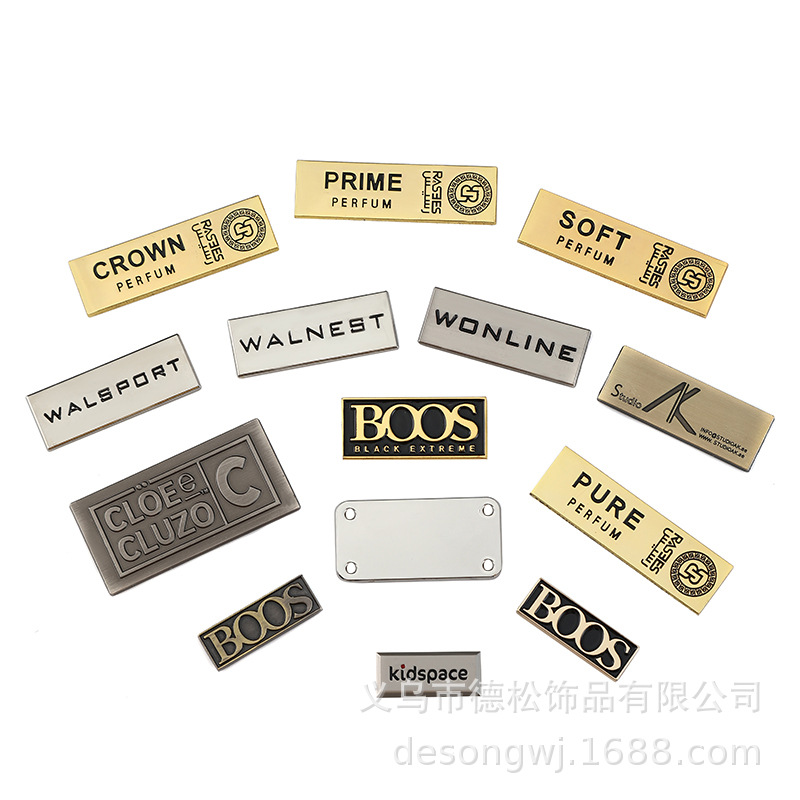 厂家定制铭牌刀具木盒商标签金色酒标锌合金凹凸玻璃瓶立体标牌