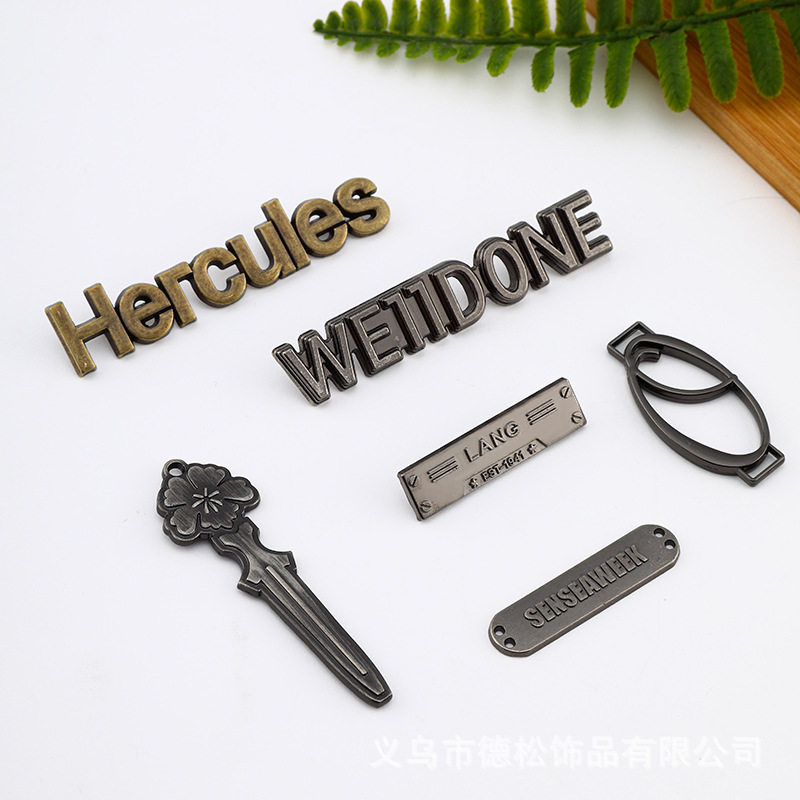 古青铜包包配件复古女包金属商标logo做旧标牌合金拉丝插脚铭牌
