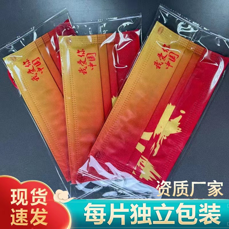我爱你中国口罩中国红一次性口罩红色国潮三层防护面罩国庆节口罩