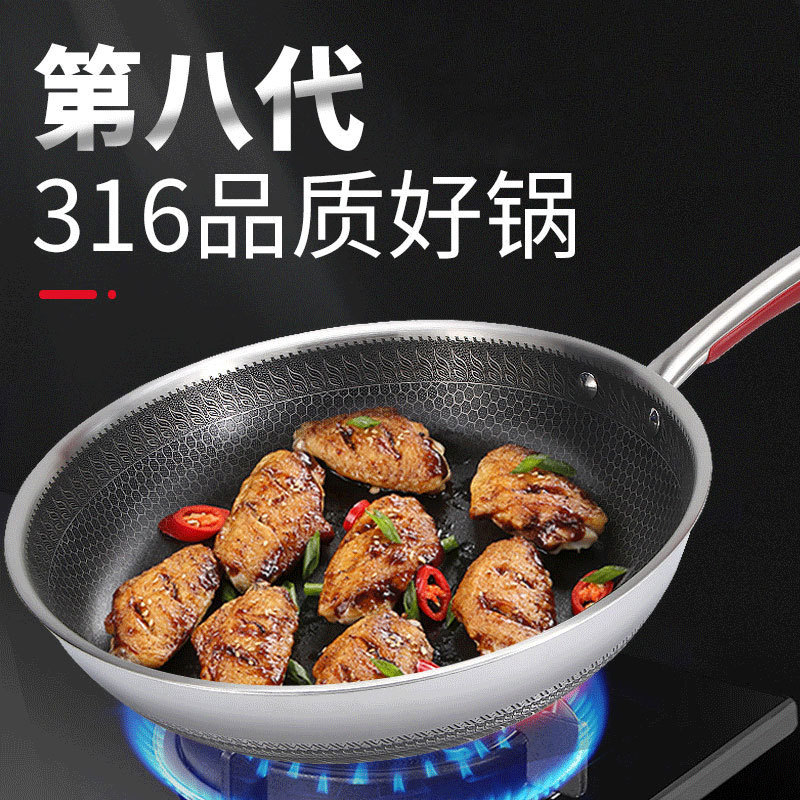 德国316不锈钢锅蜂窝炒锅平底煎锅炒菜锅双面不粘锅锅具礼品批发