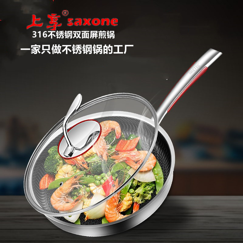 厨房礼品批发家用不锈钢煎盘 双面蜂窝平底锅316不锈钢不粘煎锅