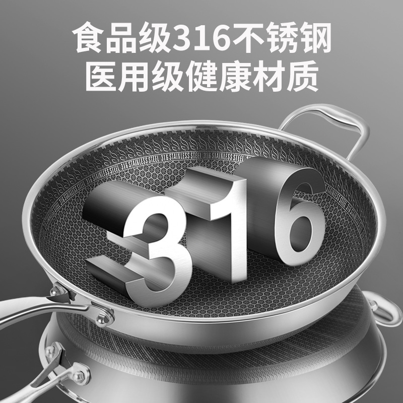 蜂窝316不锈钢锅平底煎锅炒菜锅不粘锅不锈钢炒锅礼品锅具批发