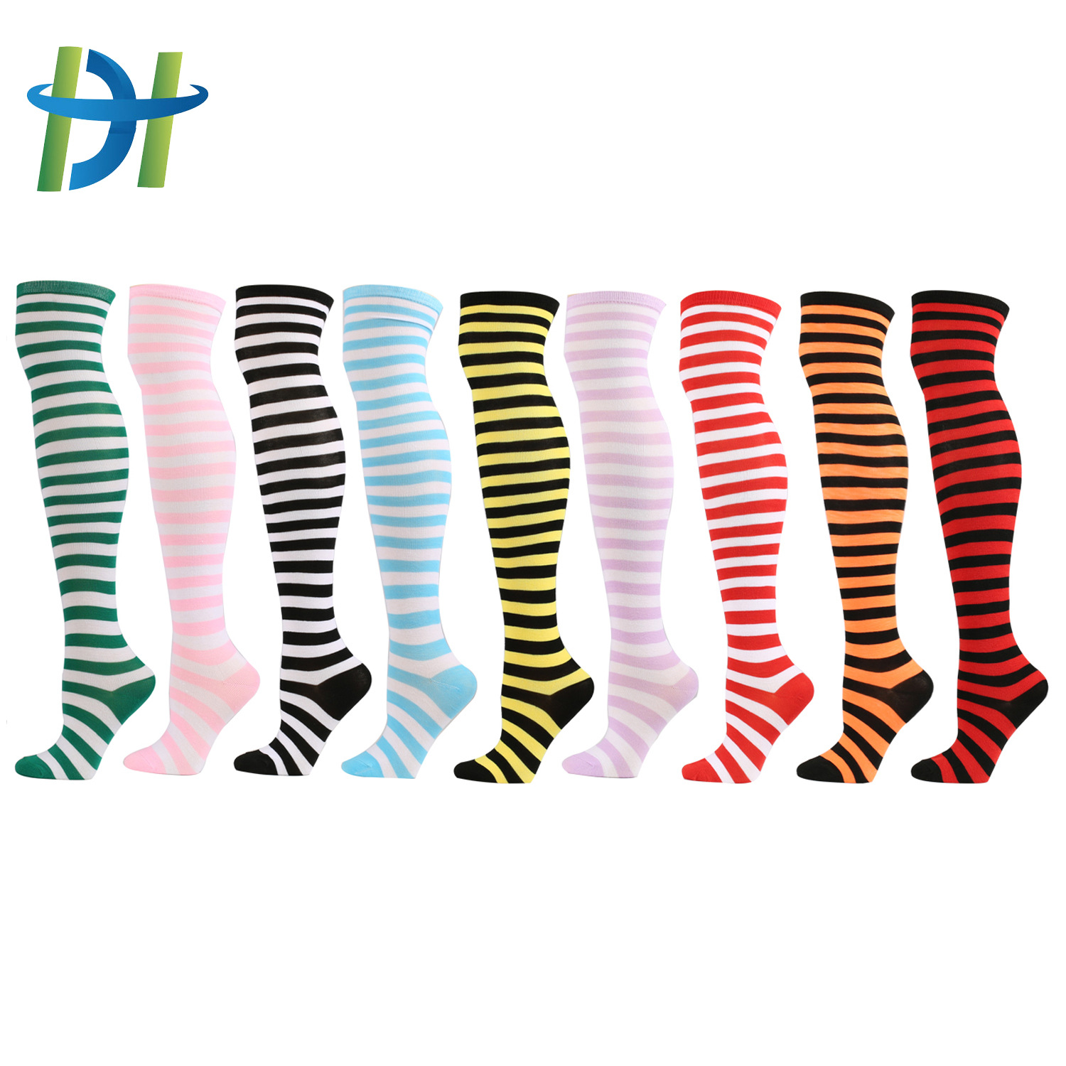速卖通爆款COSPIAY动漫日系长筒女袜提花条纹过膝大腿袜厂家批发
