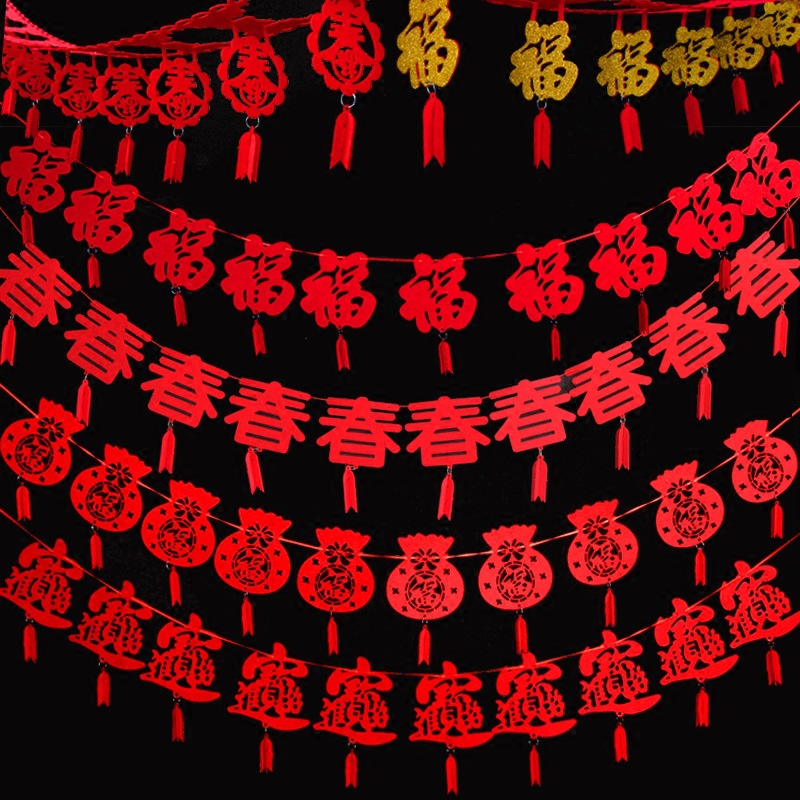毛毡福字拉花喜字无纺布拉条装饰毛毡布春节新年元旦挂饰厂家批发
