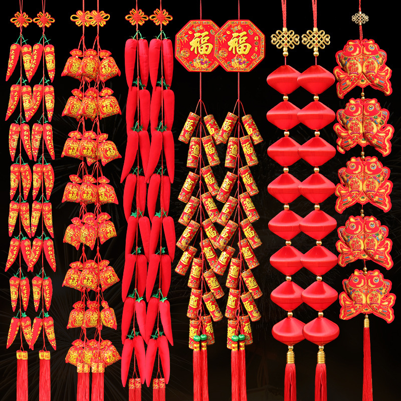 2022新年新款虎年辣椒灯笼福袋鞭炮串中国结挂件春节装饰用品批发