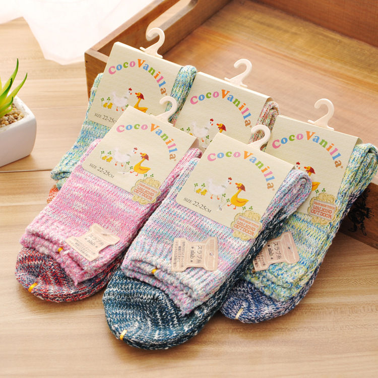 新款中筒袜加厚 民族风毛线袜时尚混搭多色混纺运动袜子批发 女