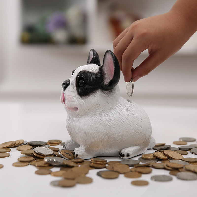 小狗存钱罐摆件树脂工艺品斗牛犬储蓄罐儿童可爱生日礼物厂家批发