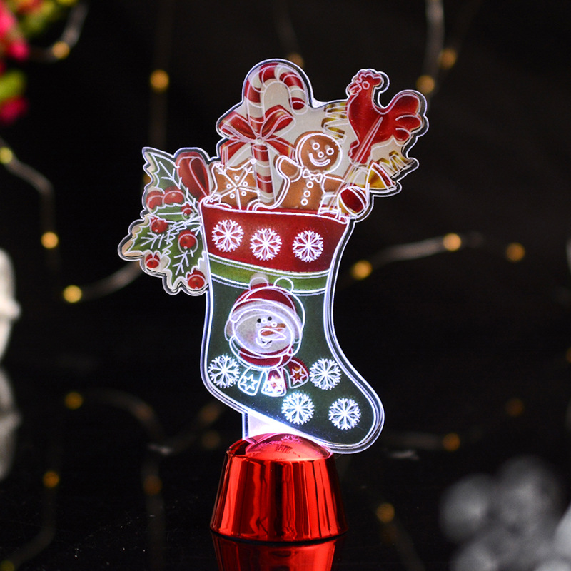 2019新款3D双面小夜灯亚克力圣诞节日装饰卡通袜