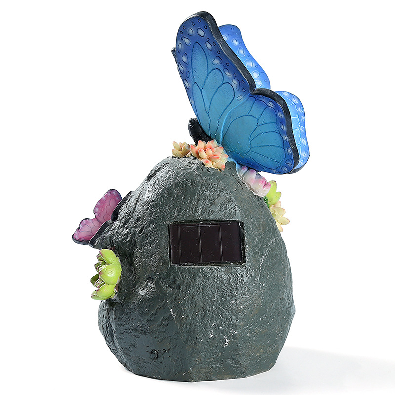 2019新款创意太阳能灯 仿水晶蝴蝶灯摆件 户外树脂家居摆件