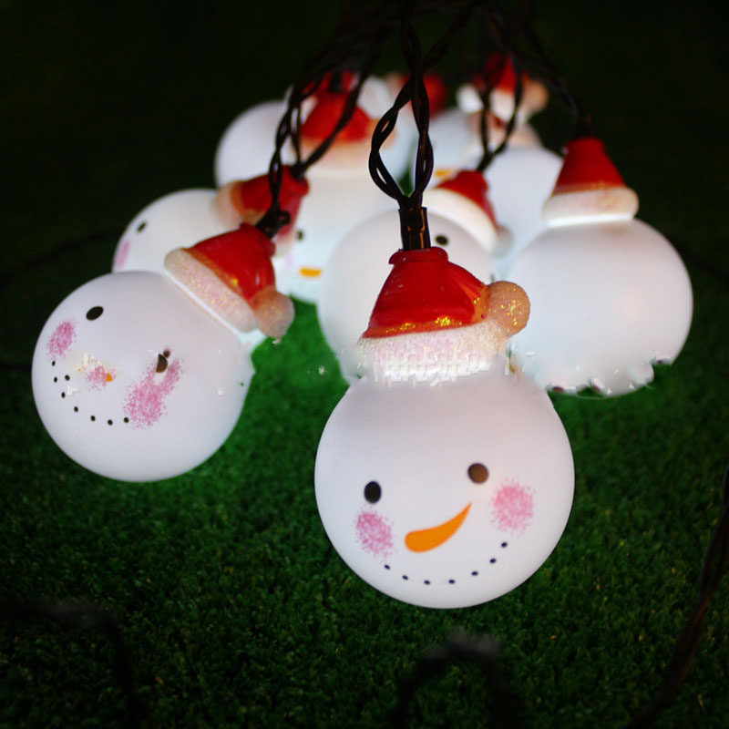 2019新款雪人灯串led圣诞灯 太阳能灯串10灯圣诞节装饰灯串电池盒
