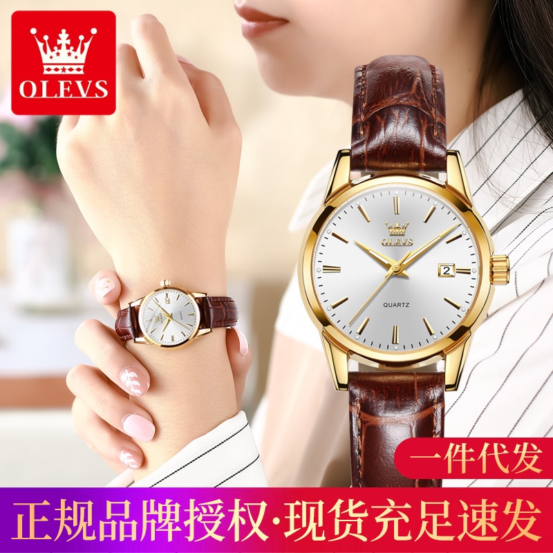 一件代发欧利时品牌手表批发时尚机械表圆形真皮表带女士手表女表