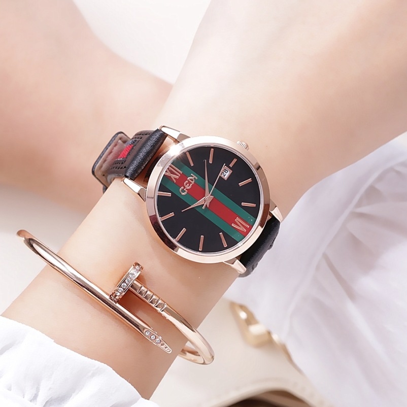 GEDI歌迪新款彩带学生手表韩版时尚古旗面石表女士日历款皮带批发