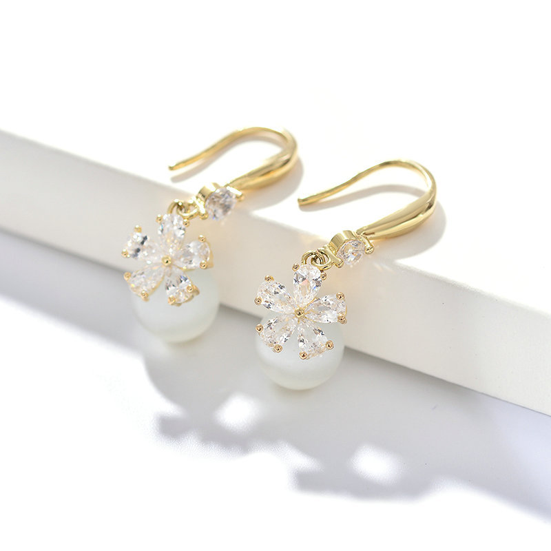 猫眼石耳坠气质韩国水晶花朵耳环长款个性流苏耳钉女简约 批发