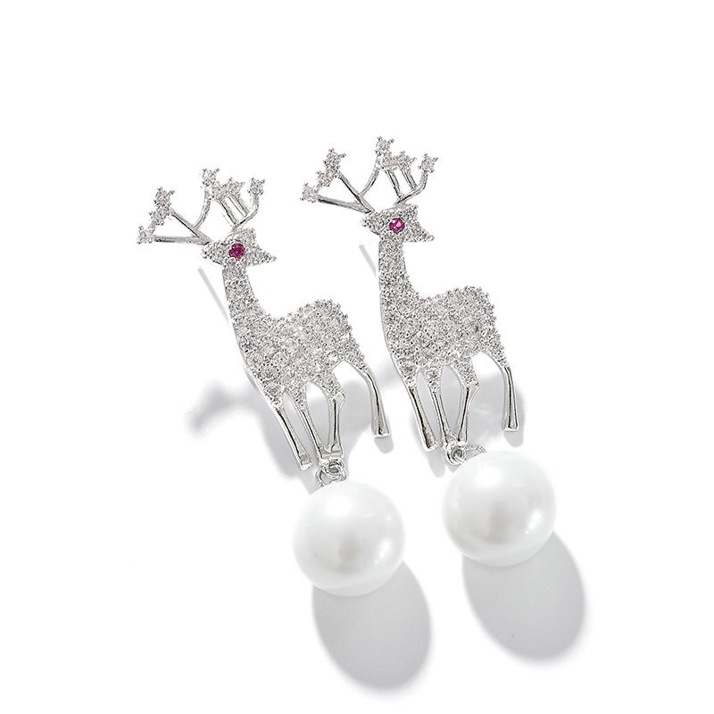 日韩时尚气质个性创意可爱小鹿珠子耳环S925银针简约女耳饰品批发