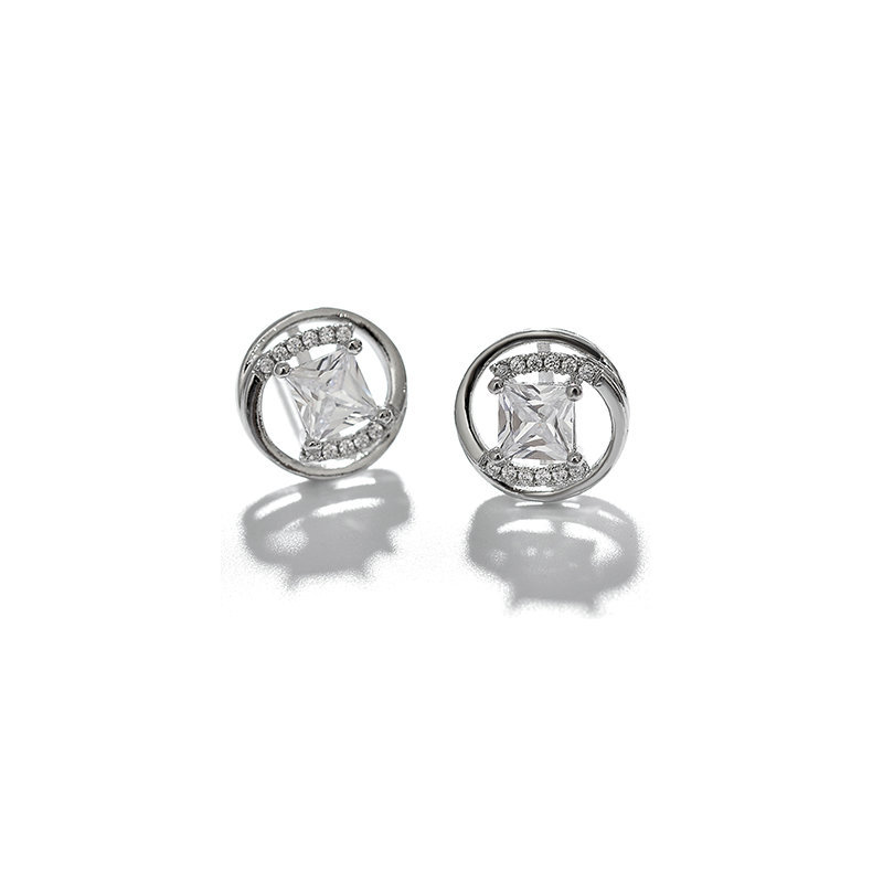 原创精致S925银针迷你花朵镶钻锆石耳环简约气质小圈圈耳钉 批发