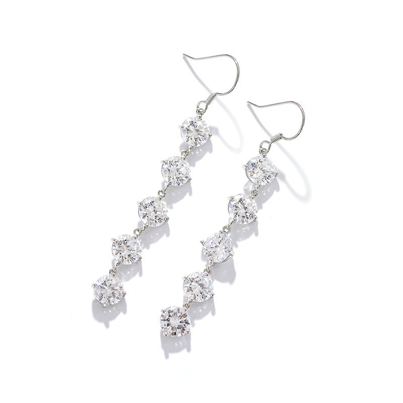 正品S925银针锆石耳环耳坠耳饰长款流苏百搭简约防过敏吊坠女批发