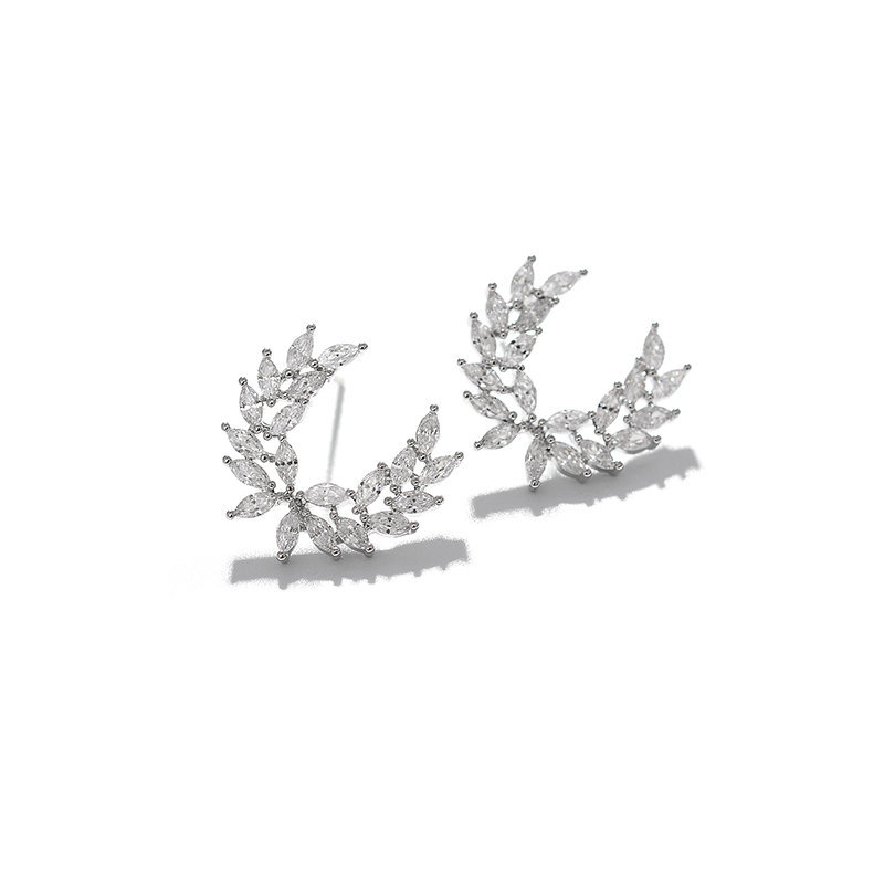 S925银耳针合成立方氧化锆橄榄枝耳钉超仙气质百搭耳环 厂家批发