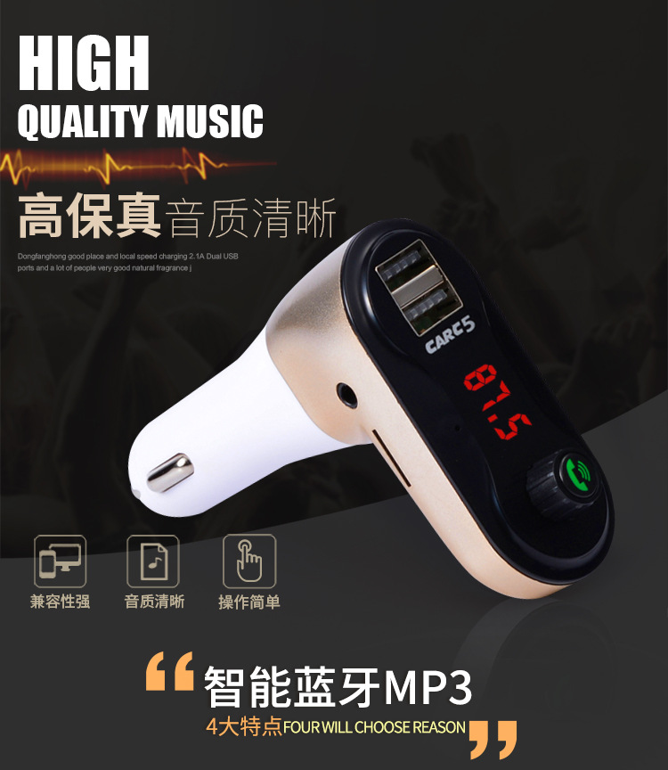 新款C5蓝牙车载mp3 点烟器式车载mp3蓝牙播放器 汽车车载蓝牙免提