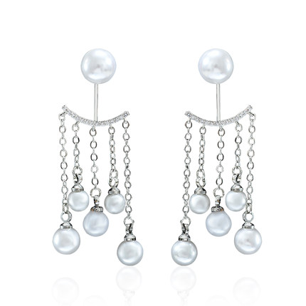 925银针人造珍珠流苏耳环女长款气质韩国时尚网红耳坠两戴耳饰品