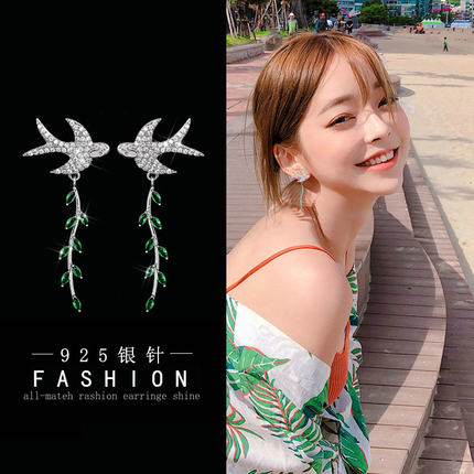925银针 树叶流苏耳环女韩国纯银超仙燕子耳钉长款