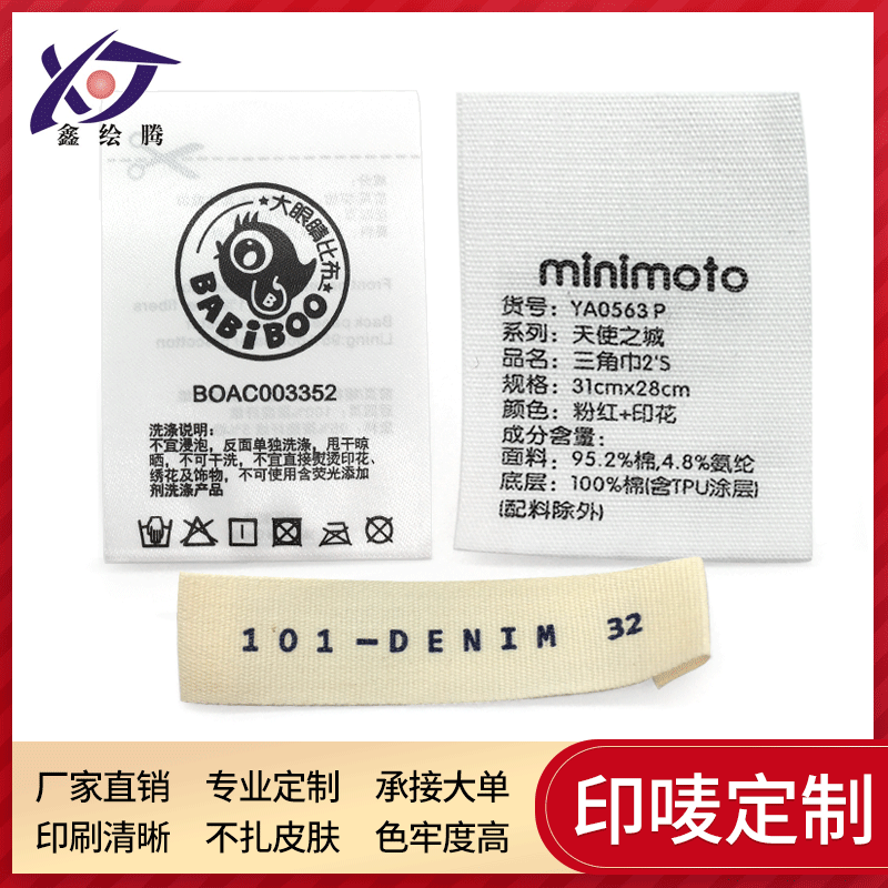 厂家定制领标印唛彩色布标服装水洗标印唛服装主唛印唛织唛定做