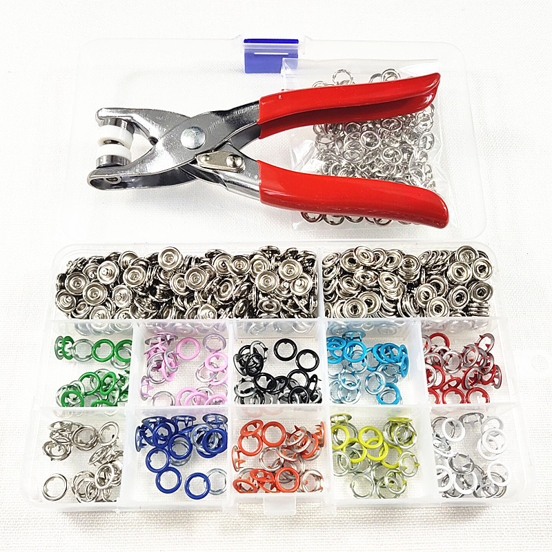 现货批发9.5MM五爪扣空心彩色儿童纽扣+手压钳工具四合扣按扣套装