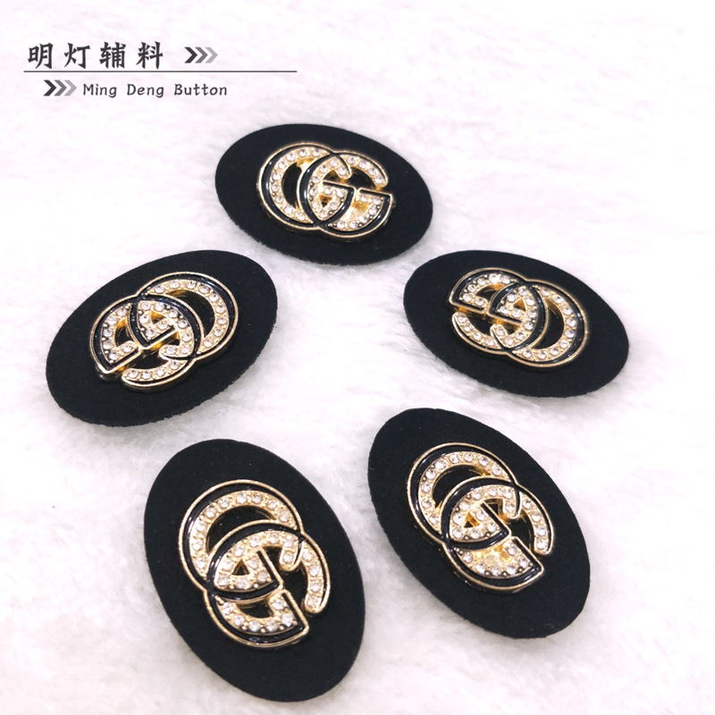 源头工厂现货金属镂空字母镶钻麂皮底皮标胸标衬衫短袖外套装饰扣