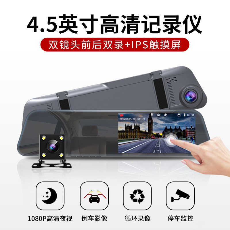 厂家批发4.5寸触摸屏行车记录仪1080p高清夜视前后双录倒车影像