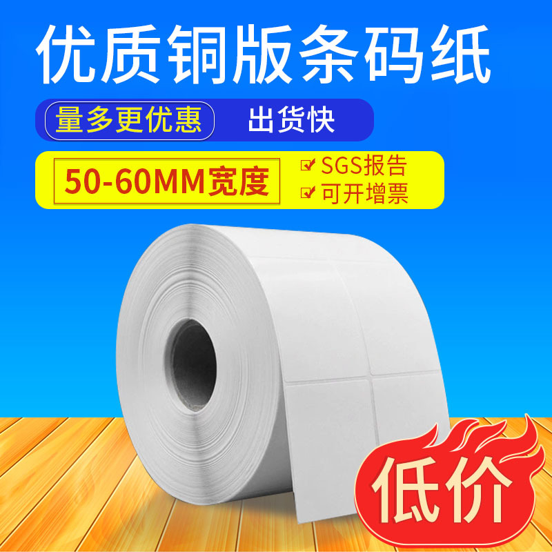 艾利铜版纸不干胶50-60宽*203035406070加粘条码纸标签碳带打印