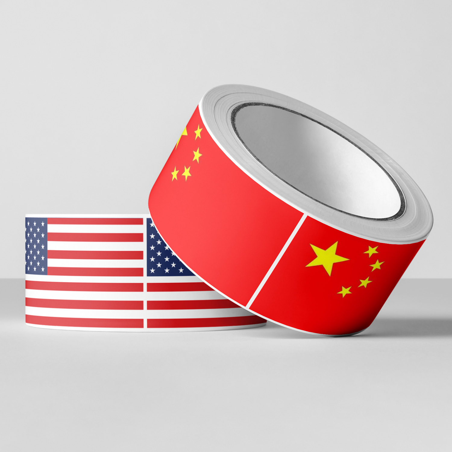 跨境爆款 1英寸x2英寸美国中国国旗贴纸不干胶贴纸标签250卷/张