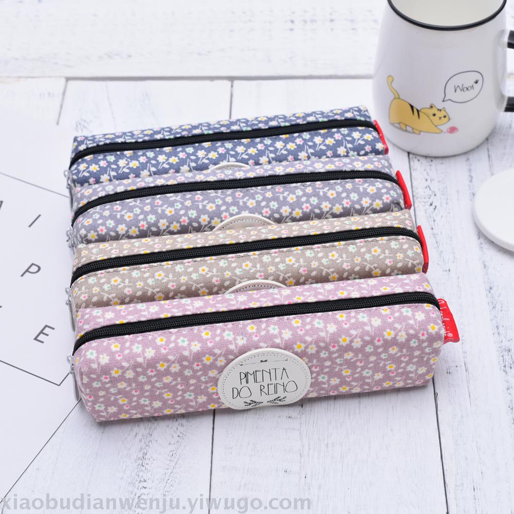 帆布高颜值女高中生简约初中生韩版小清新碎花皮标方形大容量笔袋