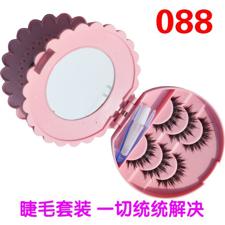 厂家批发3对装088假睫毛套装假睫毛小镜子收纳盒带胶水镊子
